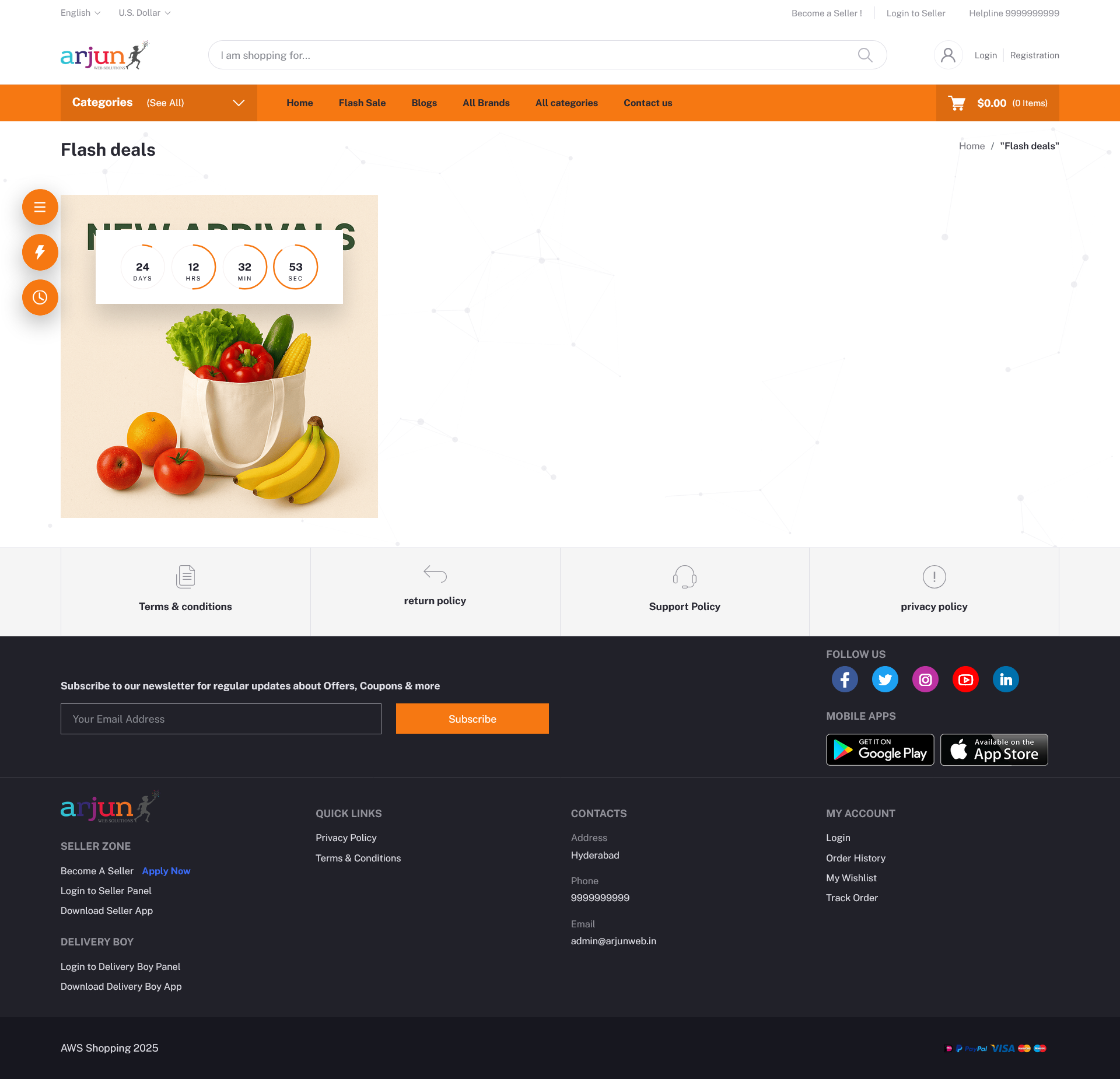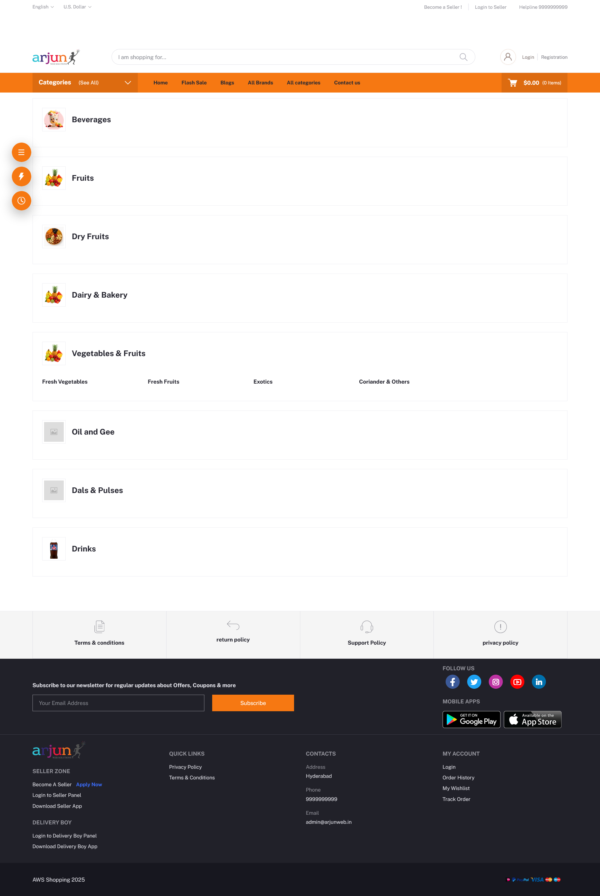 Support for Razorpay, Stripe, PayPal, Netbanking, UPI, and COD (Cash on Delivery).